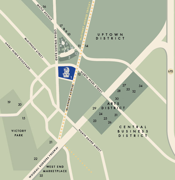 The Residences are located in a pedestrian-oriented area adjacent to the Arts District, the new Klyde Warren Deck Park and the shops, galleries and restaurants of the Uptown neighborhood.